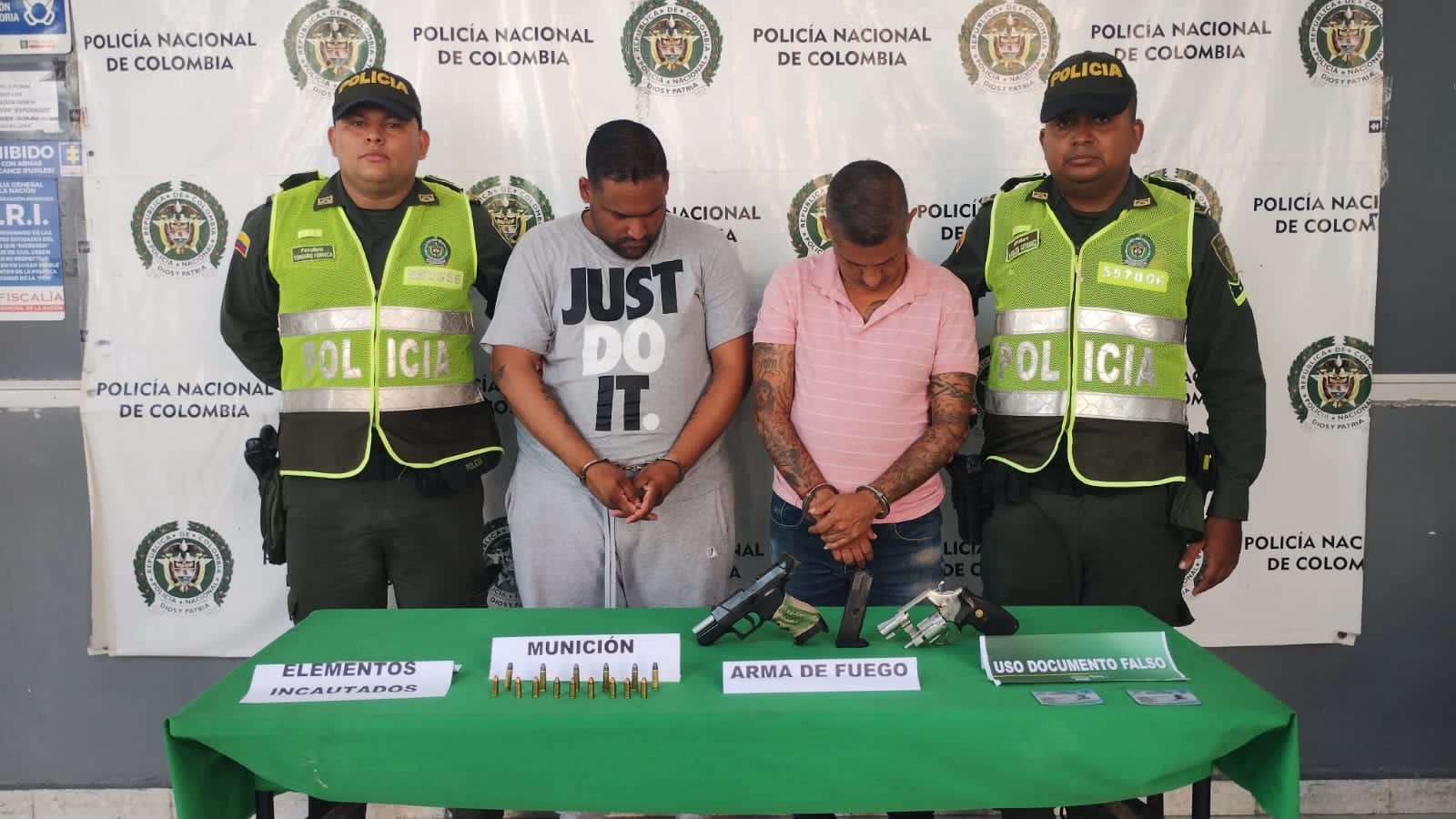 Mediante planes de registro, control y verificación de antecedentes a personas y vehículos, unidades de la Policía Metropolitana de Barranquilla capturaron a alias Deimer y alias Wando por los delitos de porte ilegal de arma de fuego y falsedad material en en documento público.